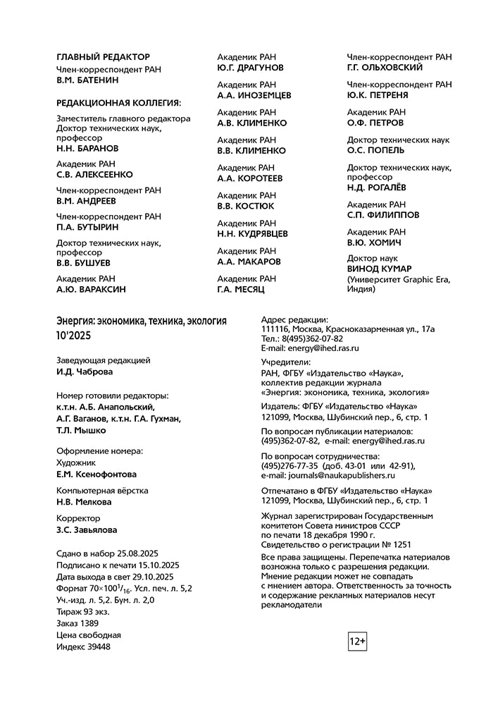 Журнал "Энергия: экономика, техника, экология " № 10, 2025